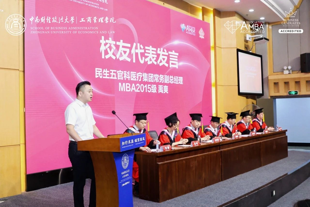 作为校友代表,民生五官科医疗集团常务副总经理、武汉/郑州院区院长禹爽受邀返校参加典礼,并发表主题演讲。同时,荣获“优秀工商管理专业合作硕士研究生指导教师”荣誉称号。