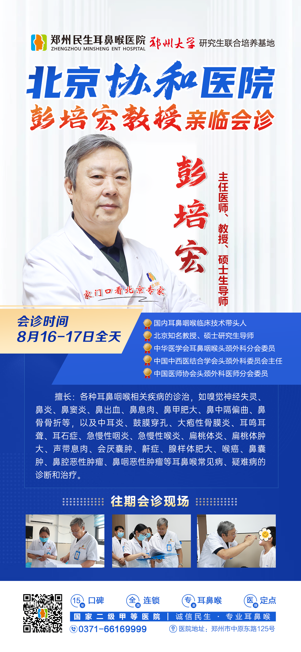 8月16—17日,北京协和医院耳鼻喉专家彭培宏教授将亲临