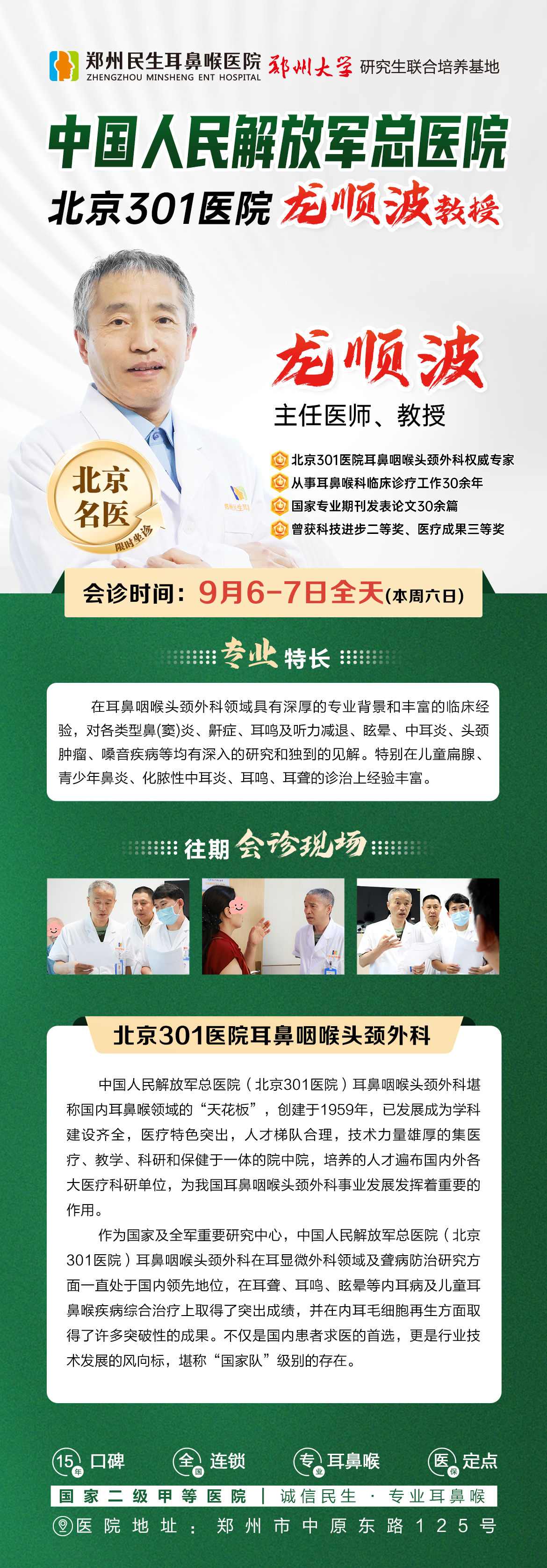 北京301专家郑州亲诊 | 龙顺波教授9月6-7日(周六、周日)限号会诊,仅20席,速