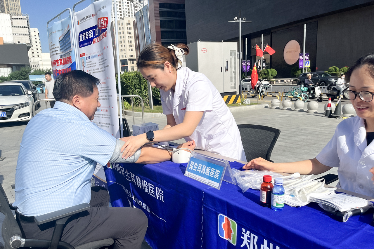 作为二七区科普研学基地,郑州民生耳鼻喉医院始终把普及医学知识、服务社会健康作为重要责任。活动当天,院长助理石子璐带队出席。耳科病区郑慧医生带领医护团队在现场设立医疗服务台,为群众提供耳鼻喉义诊、血压测量及健康咨询服务。医护人员耐心解答居民疑问,为大家讲解如何预防鼻炎、耳鸣、眩晕等常见疾病,提醒群众重视早期信号,做到