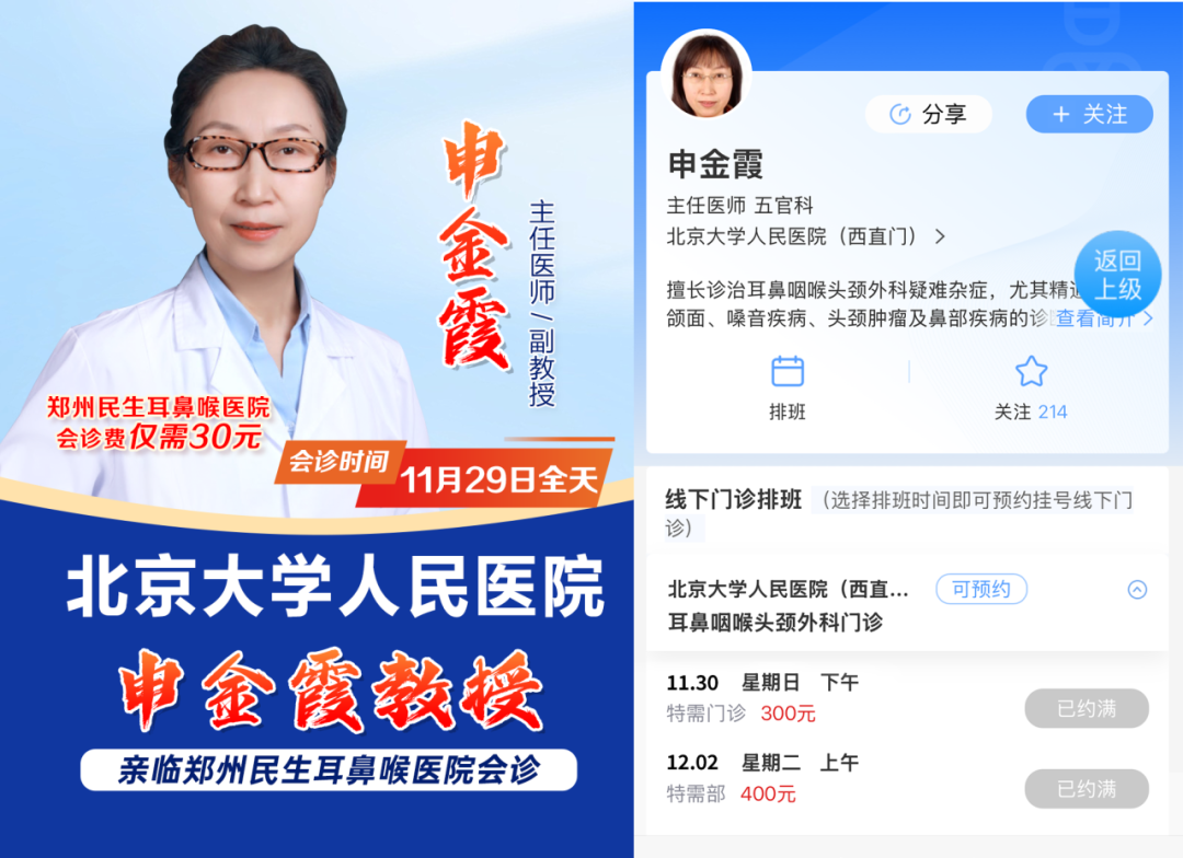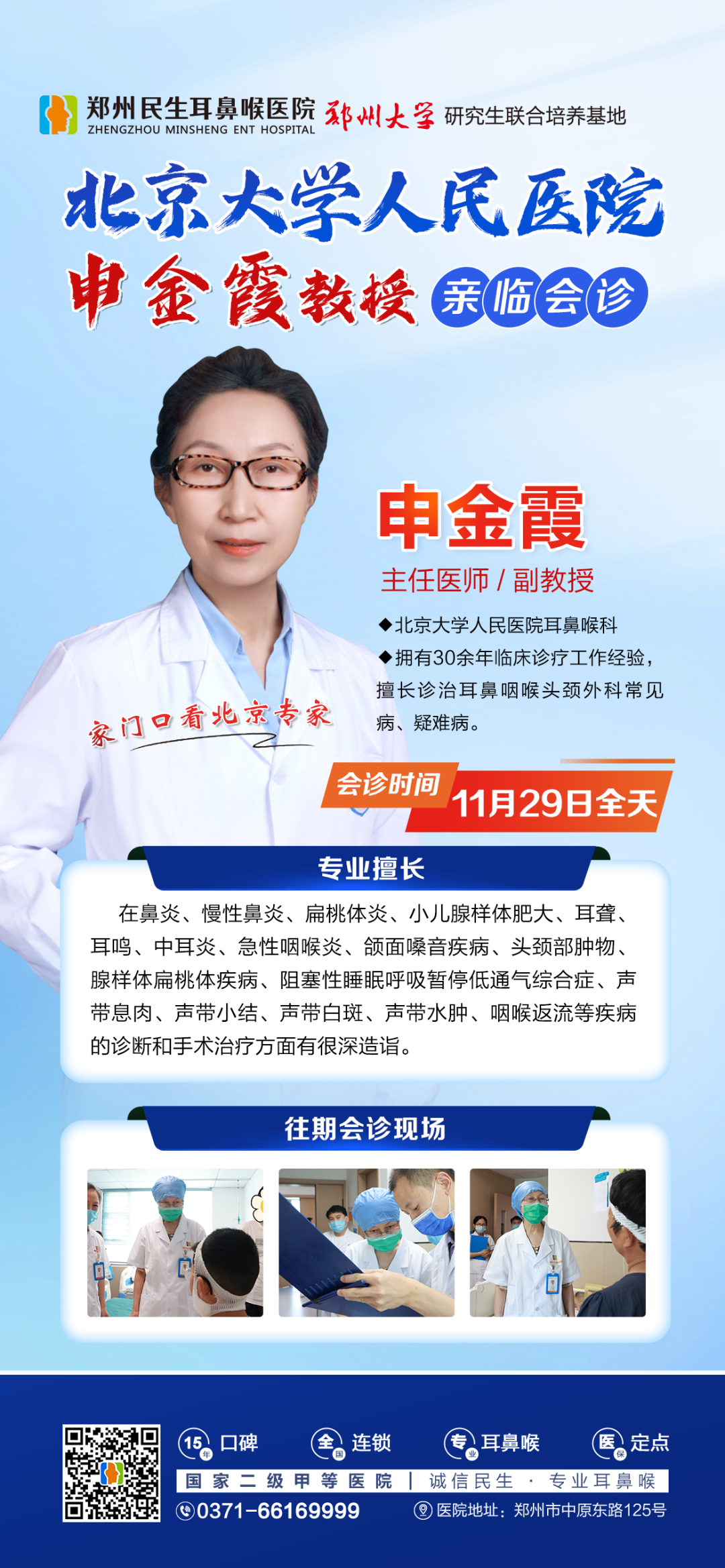 北京大学人民医院耳鼻喉专家申金霞教授将亲临郑州民生耳鼻喉医院限号会诊,为郑州及周边患者提供专业、高效、精准的诊疗服务。